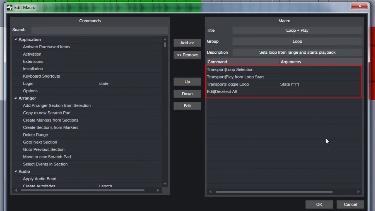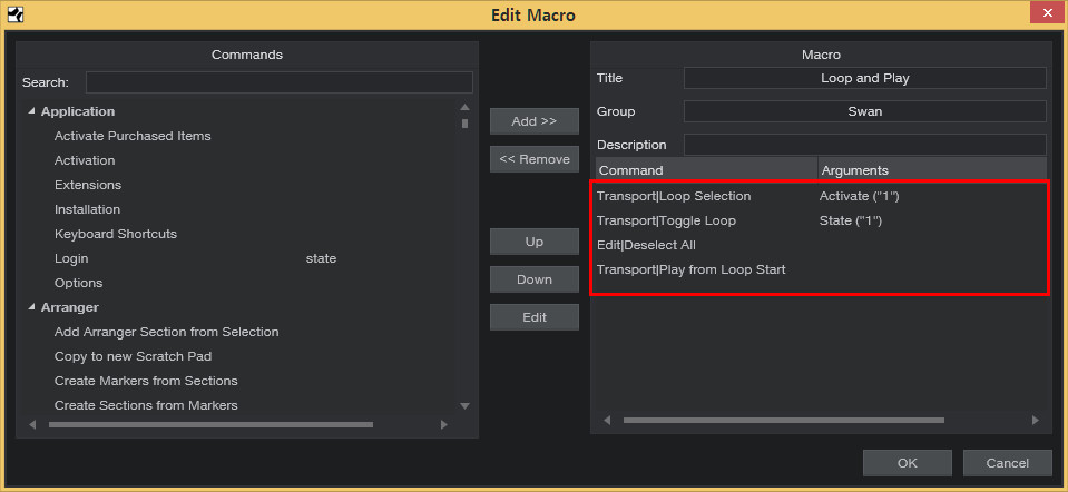 * 스튜디오원이 버전업 되면서 Loop Selection 명령어에 파라미터 activate()가 추가되었네요.
