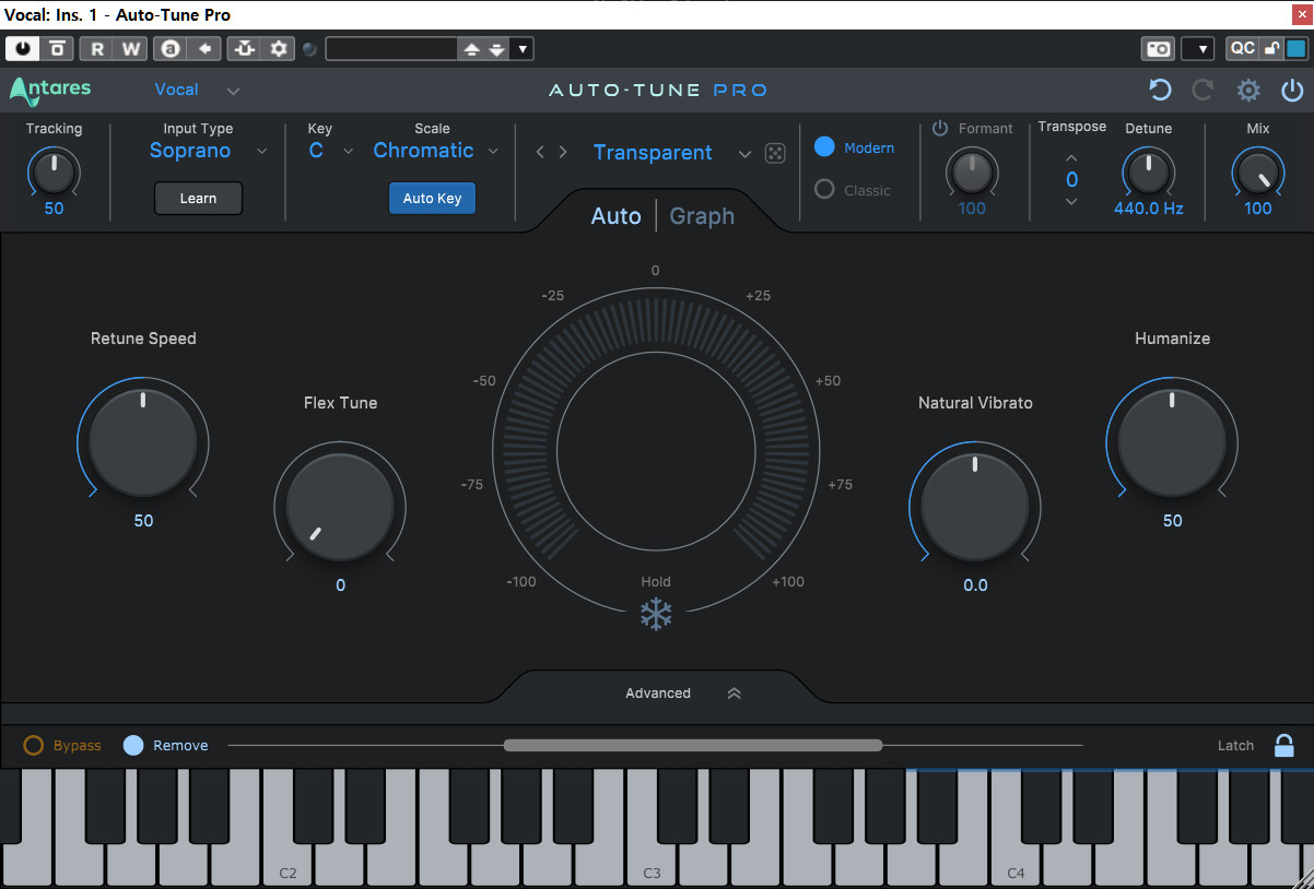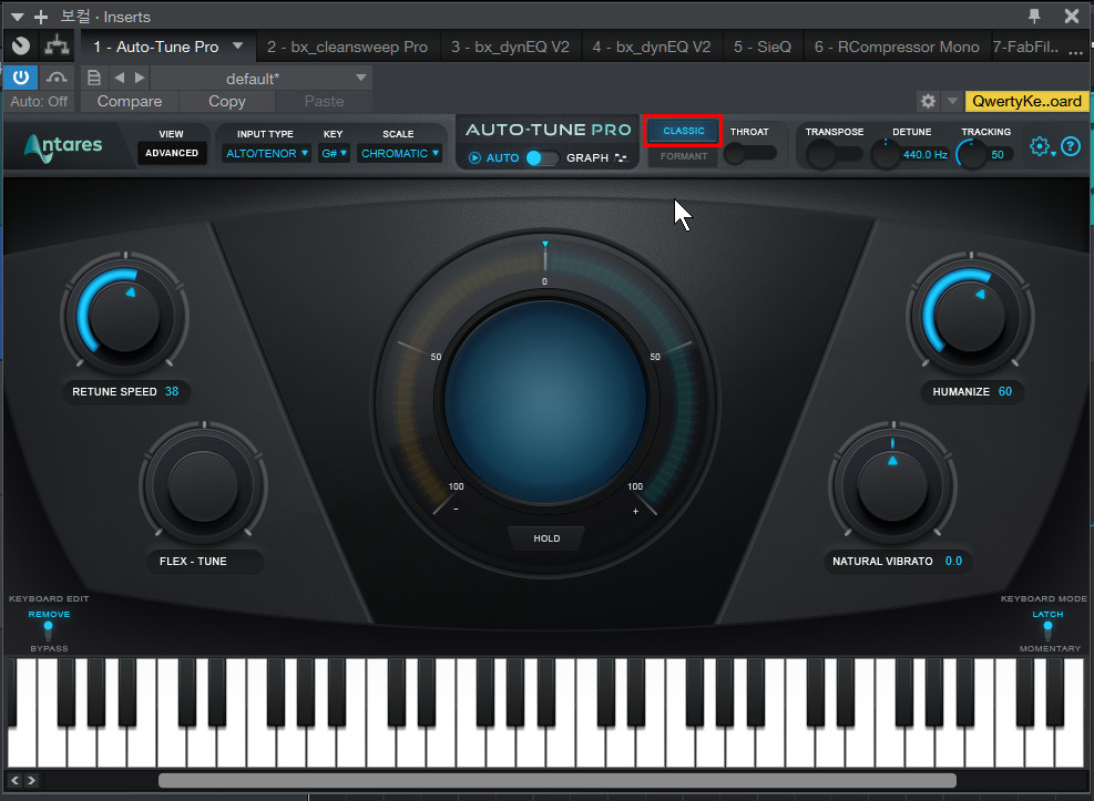 CLASSIC 모드를 키고 Auto-Tune 5 버전의 알고리즘으로 튠 한 것을 비교해서 들어보고,