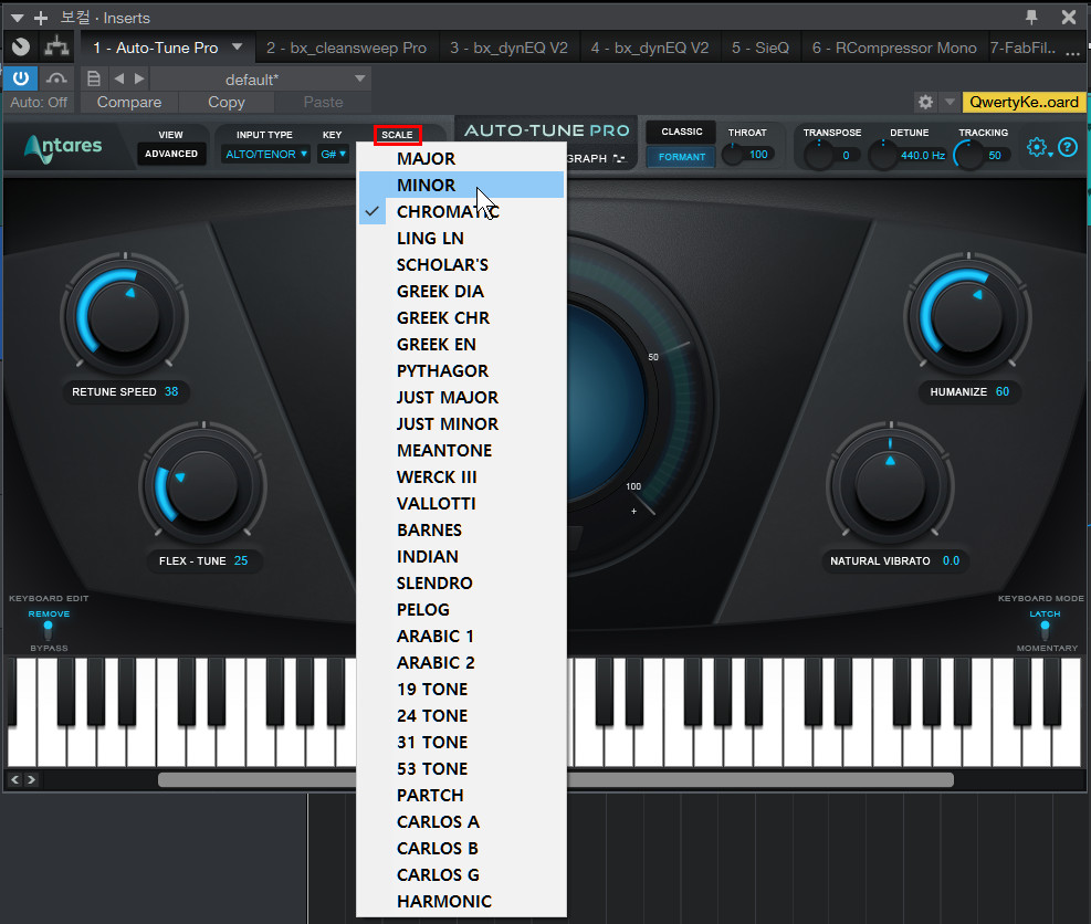 곡의 키와 스케일은 Antares Auto-Key를 MR 트랙에 걸어서 알아내는 방법도 있고,