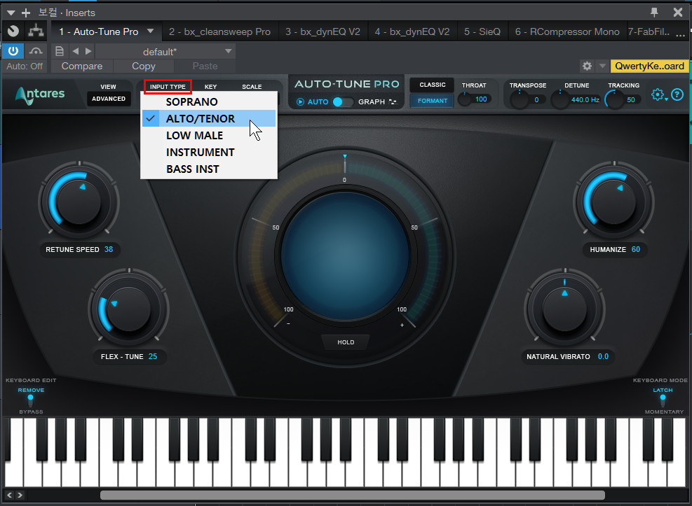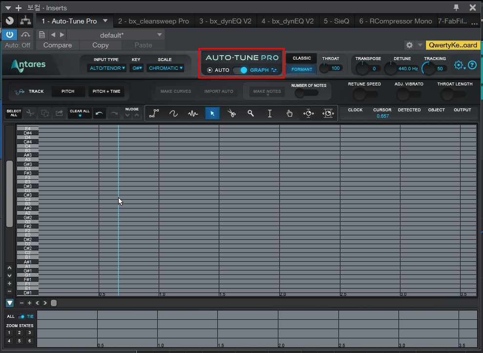 ① 보컬 트랙의 인서트 슬롯 첫번째에 Auto-Tune Pro를 걸어줍니다.