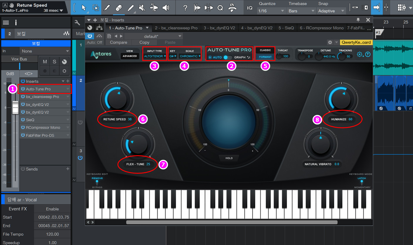 ⑤ Retune Speed: 얼마나 빠르게 목표한 음으로 보정을 할지 정하는 파라미터(단위는 ms)