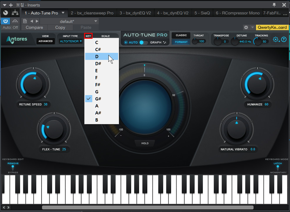 ④ 보정하려는 곡에 맞는 키(Key)와 스케일(Scale)을 선택합니다.