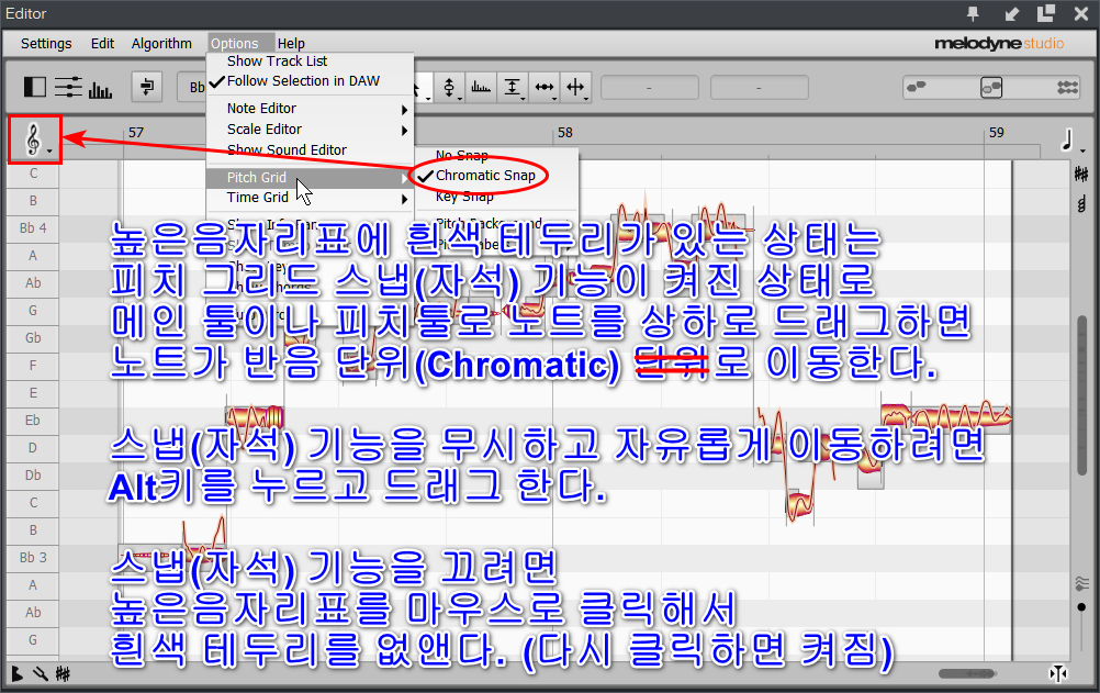 본 강의는 멜로다인(Melodyne) 5 Studio 버전을 ARA 모드로 실행했을 때를 기준으로 작성되었습니다.