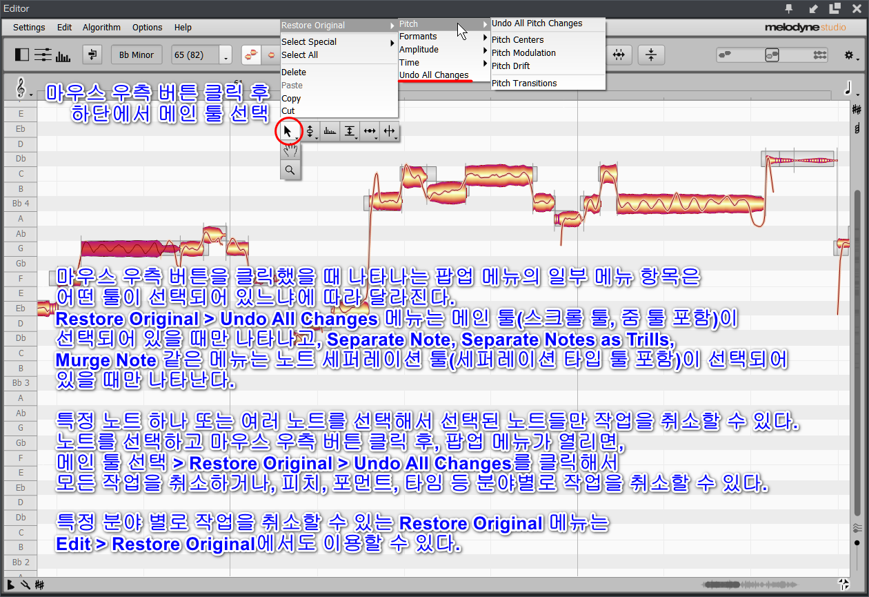 본 강의는 멜로다인(Melodyne) 5 Studio 버전을 ARA 모드로 실행했을 때를 기준으로 작성되었습니다.
