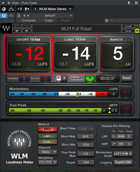 Waves WLM Meter에서는 Integrated Loudness를 Long Term이라고 표기하네요.