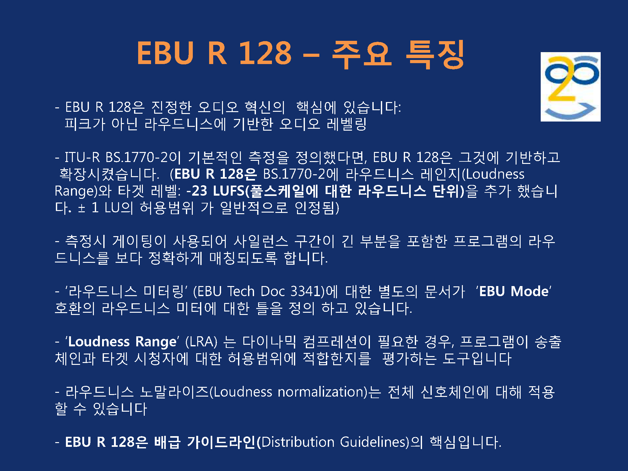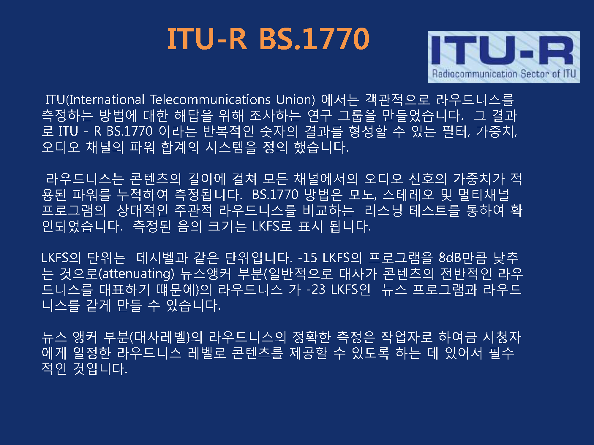 3) ITU는 라우드니스 측정 단위로 데시벨(dB) 기반의 LKFS를 정의했고,