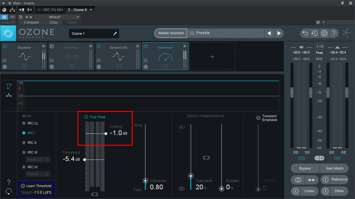 *** iZotope Ozone 8 Maximizer에는 사용자가 지정(target)한 Integrated LUFS 값에 맞게 Threshold 값을