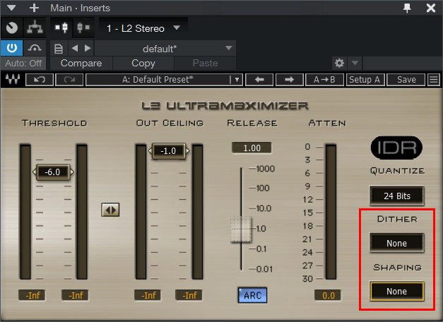 Waves사의 L2 리미터의 경우도 걸면 기본적으로 IDR이라는 디더링 시스템이 켜져있습니다.
