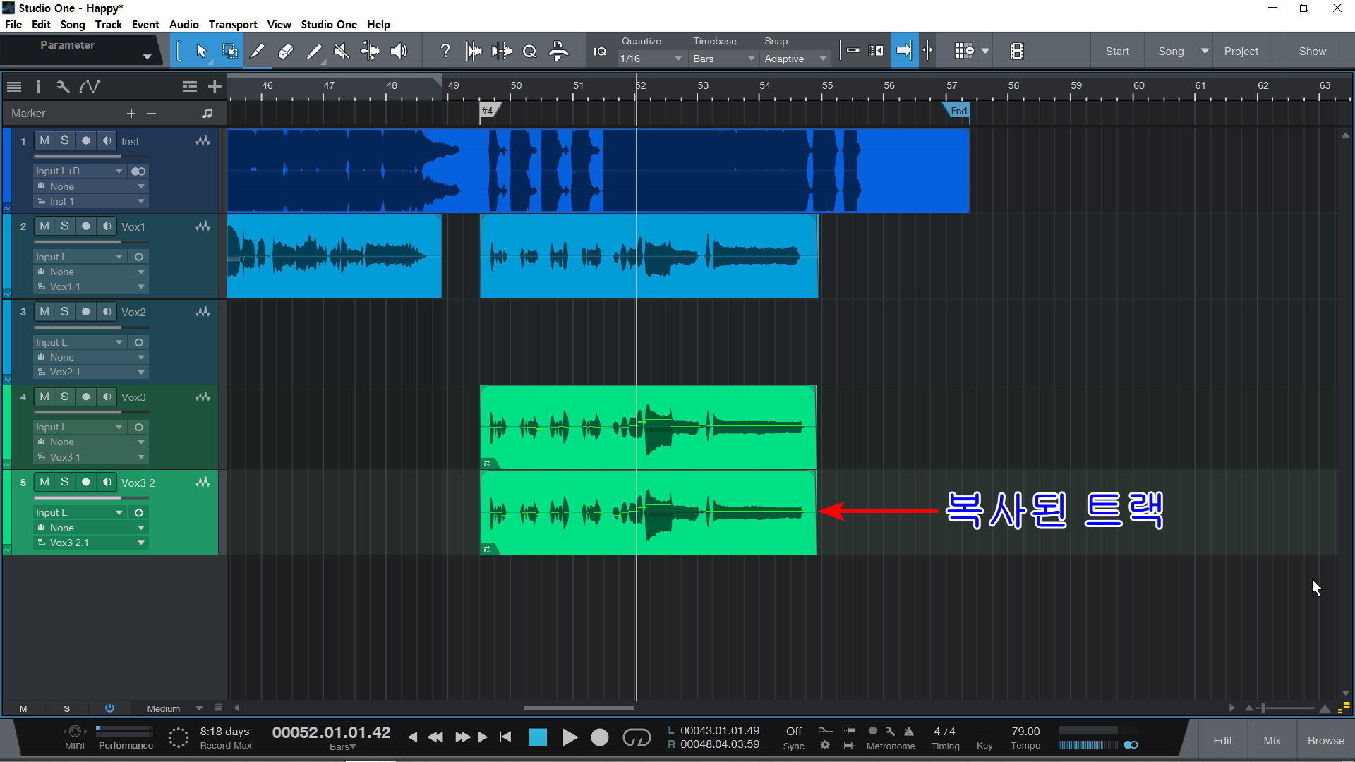 튠을 끝냈으면 더블링으로 쓸 트랙을 복사합니다.