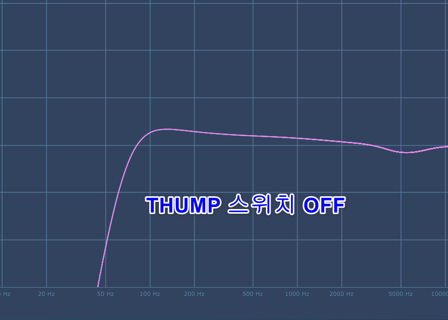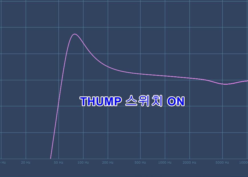 THUMP: 세츄레이션 회로로 들어가는 입력신호의 로우 컷 주파수를 몇 dB 증가시킴(레조넌스 추가). 아래의 그림 참조.